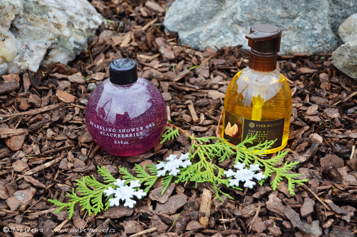 Sprchový gel se třpytkami vonící po ostružinách je z vánoční limitované edice Yves Rocher a stejně jako loni, tak i tento rok není sám a má spoustu voňavých kamarádů. Gel nevysušuje, krásně voní, a to nejen v lahvičce, ale i na těle a navíc má rozkošné balení, z kterého jsem byla nadšená už minulý rok. Jediné, co mu musím vytknout je to, že třpytky na těle alespoň jemně nezůstávají. Dobře, dvě až tři třpytky jsem na kůži objevila, ale kdyby jich bylo víc, nezlobila bych se. Takže pokud se chci třpytit, budu muset asi sáhnout po tělovém pudru se třpytkami ze stejné edice.
